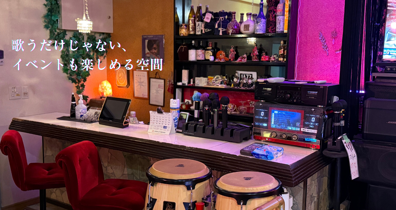 当店は、広々としたサロン形式のフロアに、快適なカラオケ空間をご用意しております。